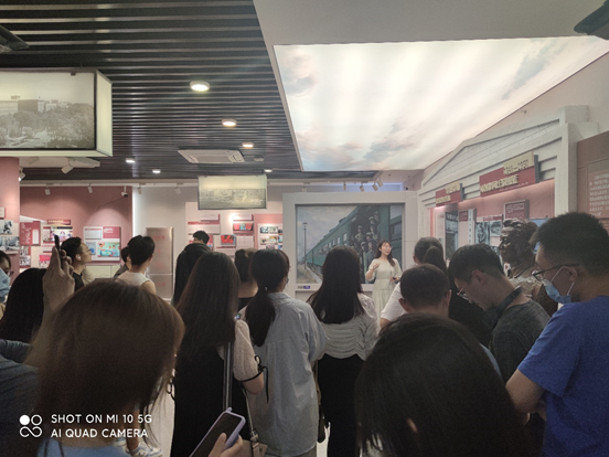曲折前行的历史脉络,大家时而聚集在讲解员身边认真聆听讲解,时而分散开仔细了解自己感兴趣的史料。跟随讲解员的脚步,同学们了解了国产自拍