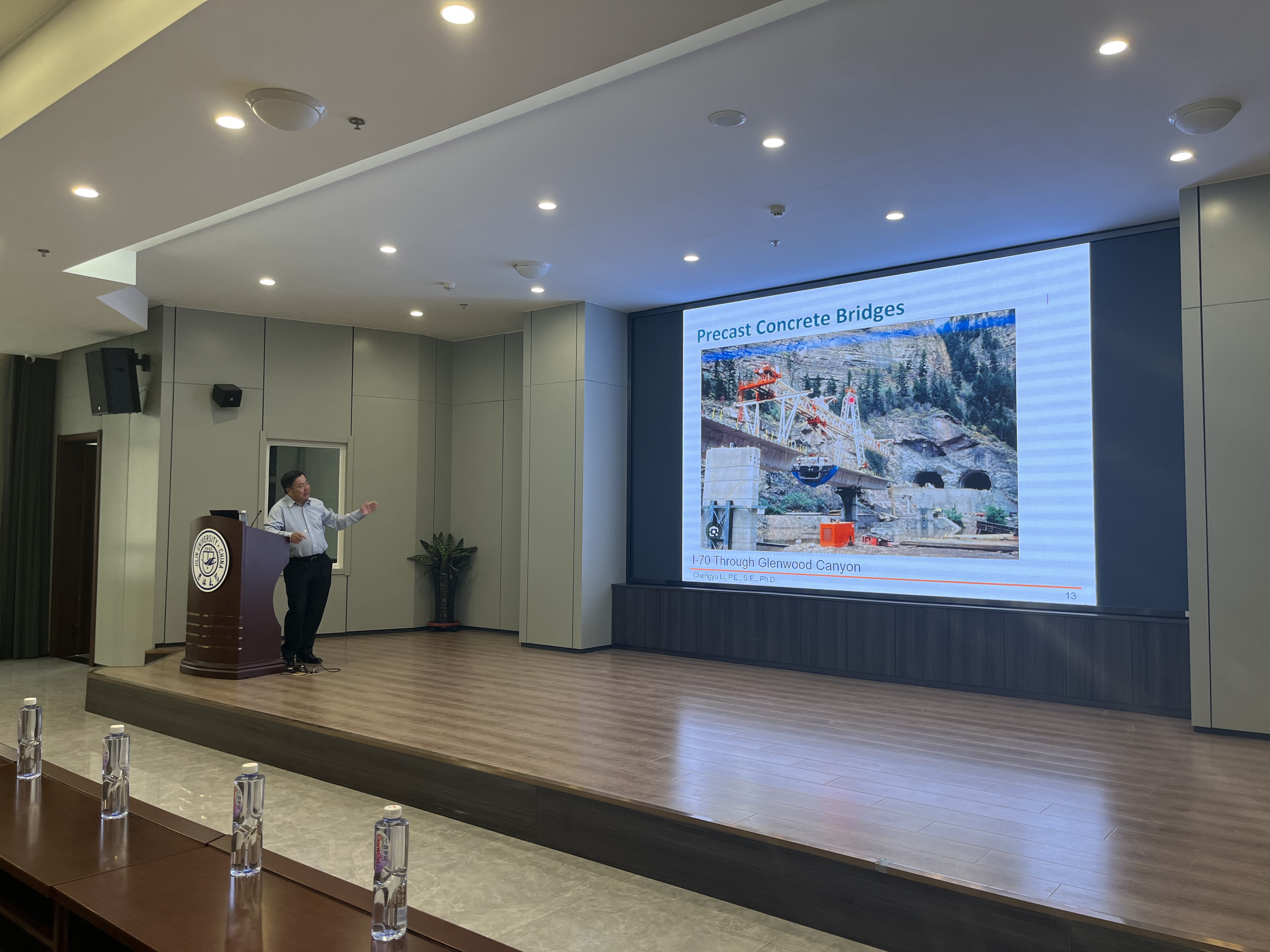 李成玉教授从预制桥梁、整体式桥梁等多种桥梁入手,结合国外多项施工工程,从结构预制、吊装拼装、桥面连接等流程多方面深入浅出地介绍了当前背景下国外桥梁快速施工方案及相应应用场景。李成玉教授表示,要推进城市桥梁建设,需要从材料到结构全方位全过程创新升级。他指出,新型桥梁结构形式不仅可以保证基本工程性能,也能够加速推进城市建设,在兼备环境友好性、城市美观性的基础上,更能节约自然与人力资源。
